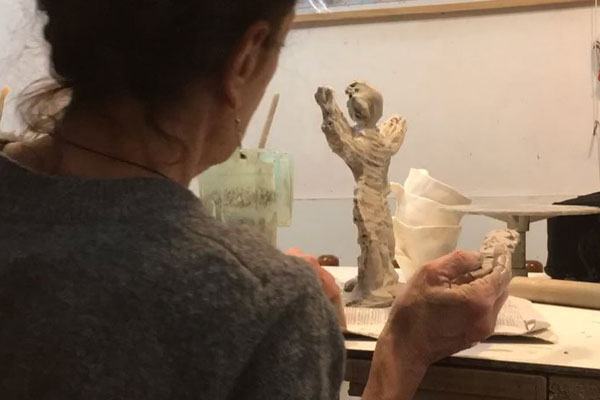 Dall’agosto 1979, a Roma, inizia ad apprendere le tecniche di lavorazione della ceramica presso il laboratorio di Siglinda Scarpa , iniziando una ricerca di nuove forme espressive. Queste la porteranno alla produzione delle sue prime opere e saranno l’impulso costante per tutta la sua attività artistica.
